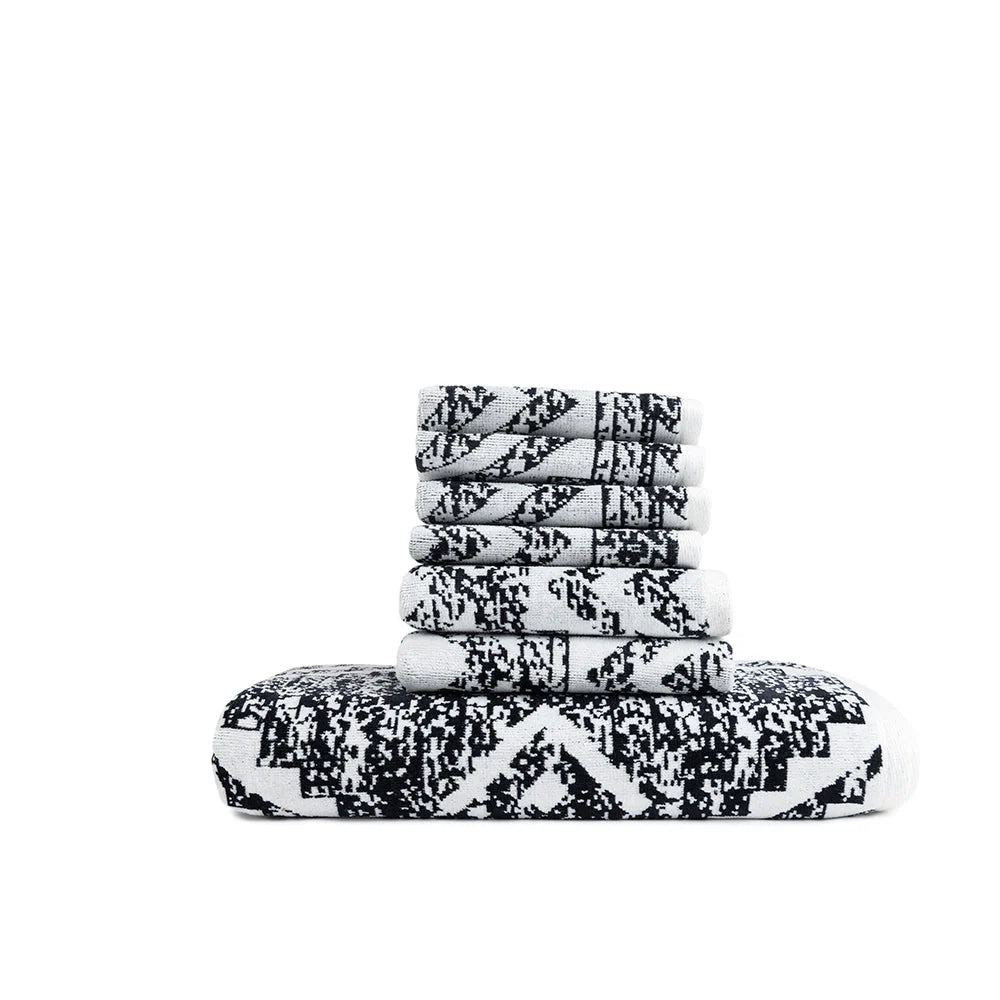 This Stylish And Eye-Catching Towel Design Has A Striking Black And White Geometric Pattern. It Draws Inspiration From Abstracted Arrowheads. The Geometric Forms And Monochromatic Palette Will Complement A Range Of Contemporary Bathroom Decor Styles, From Minimalist To Eclectic.