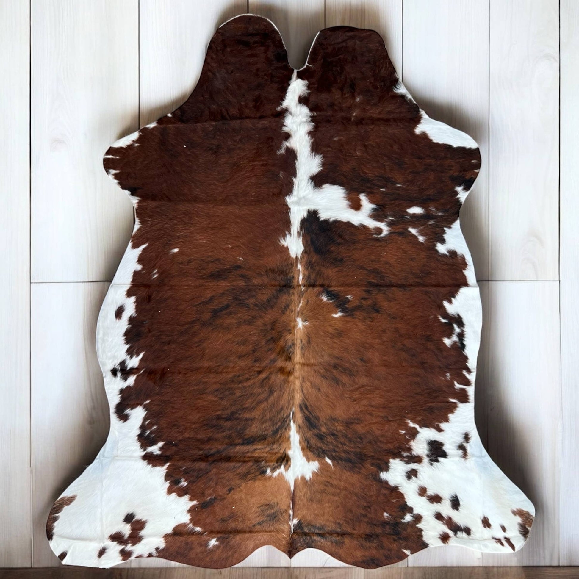 This exquisite Brazilian cowhide features a striking brindle pattern complemented by a pristine white belly, making it a stunning addition to any interior space. Each hide is meticulously sourced and crafted, showcasing unique variations in color and texture that enhance its natural beauty.