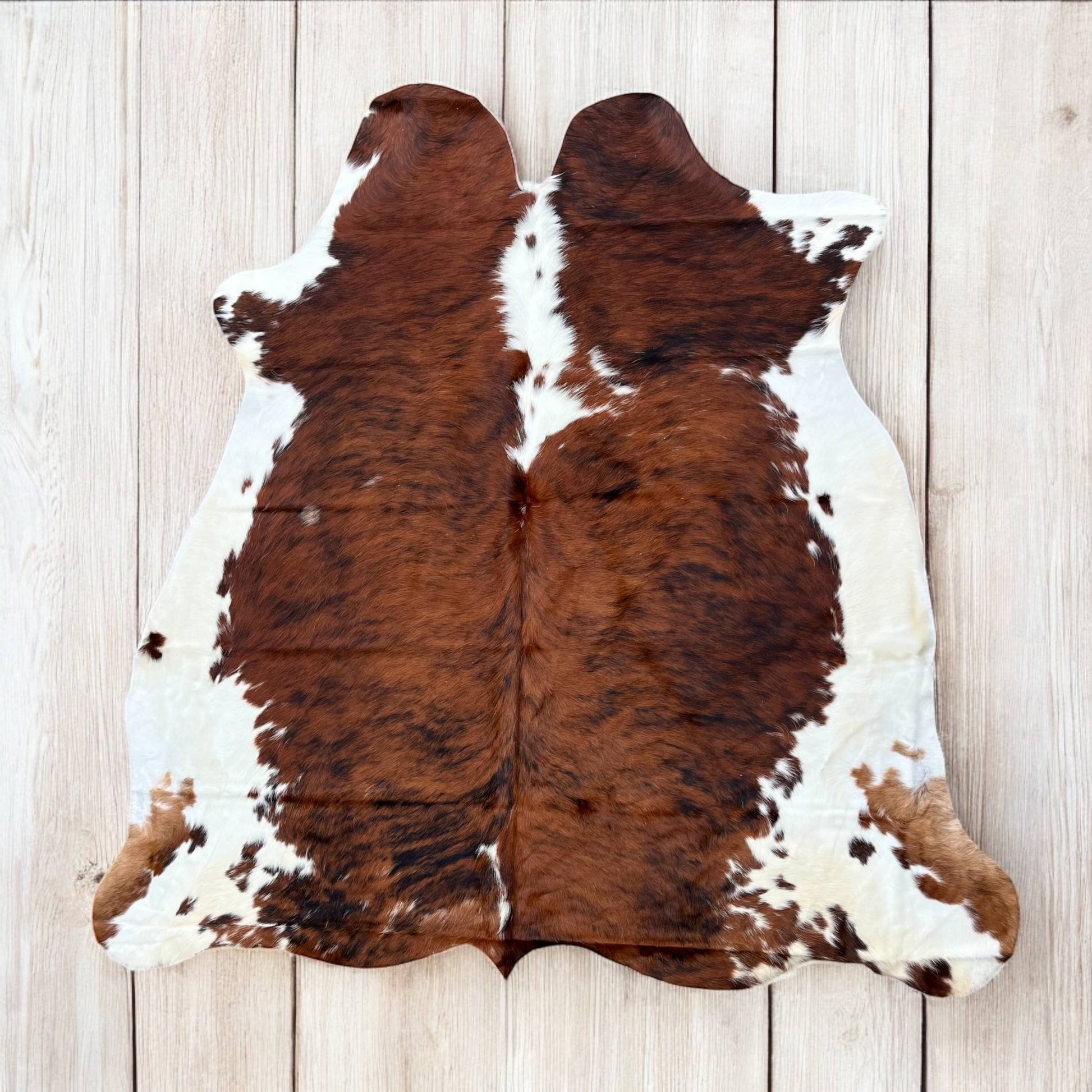 This exquisite Brazilian cowhide features a striking brindle pattern complemented by a pristine white belly, making it a stunning addition to any interior space. Each hide is meticulously sourced and crafted, showcasing unique variations in color and texture that enhance its natural beauty.