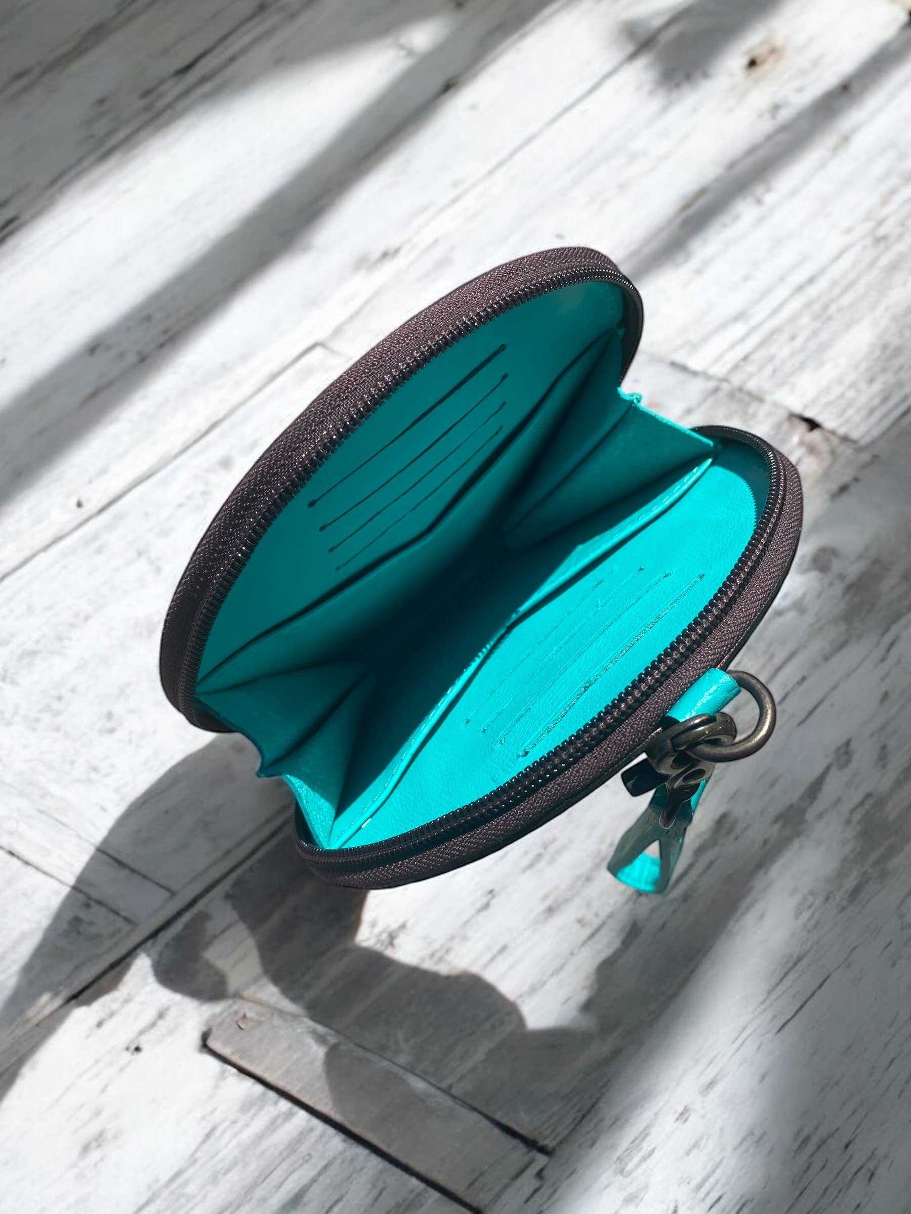 This exquisite Round Wristlet, crafted from premium tooled leather, combines elegance with functionality. Its intricate designs showcase artisanal craftsmanship, making it a stylish accessory for any occasion. The compact size is perfect for holding essentials like your phone, cards, and cash, while the secure zipper closure ensures your belongings are safe. With a convenient wrist strap, this wristlet offers hands-free versatility, making it an ideal companion for day trips or nights out.